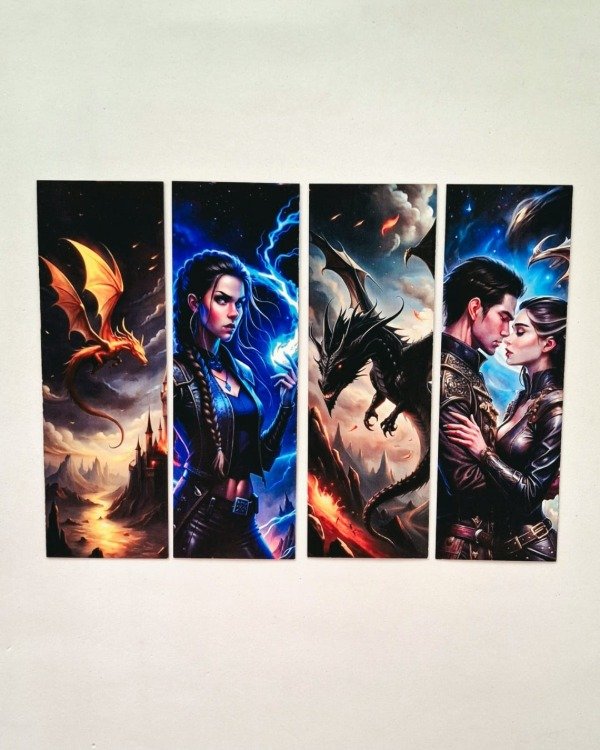 Pack de 4 marcapáginas de Alas de Sangre en papel ilustración 15x5 cm.