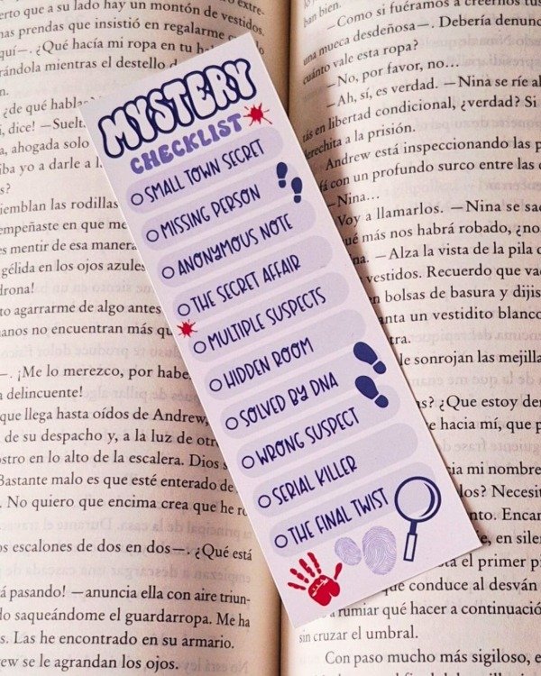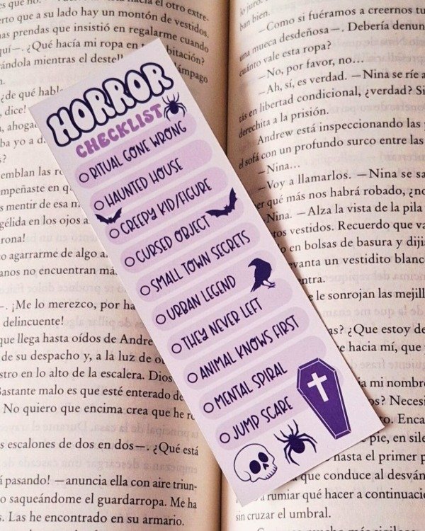 Pack de 5 marcapáginas tipo checklist en papel de ilustración 15 x 5 cm.
