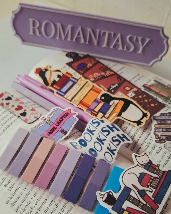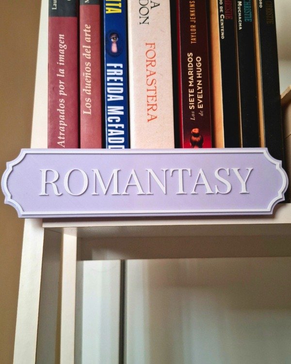 📚 Cartelito de biblioteca “Romantasy”, perfecto para decorar y organizar estantes y bibliotecas.