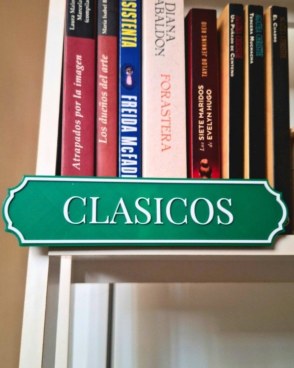 📖 Cartelito de biblioteca “Clásicos”, ideal para darle un toque prolijo a tus estantes literarios o a ese rincón donde viven tus Austen, Dickens y compañía.