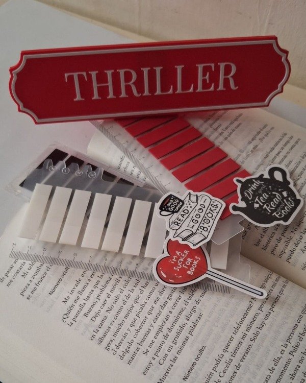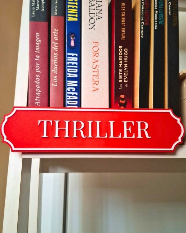 🔪 Cartelito de biblioteca “Thriller”, perfecto para organizar tus estantes.